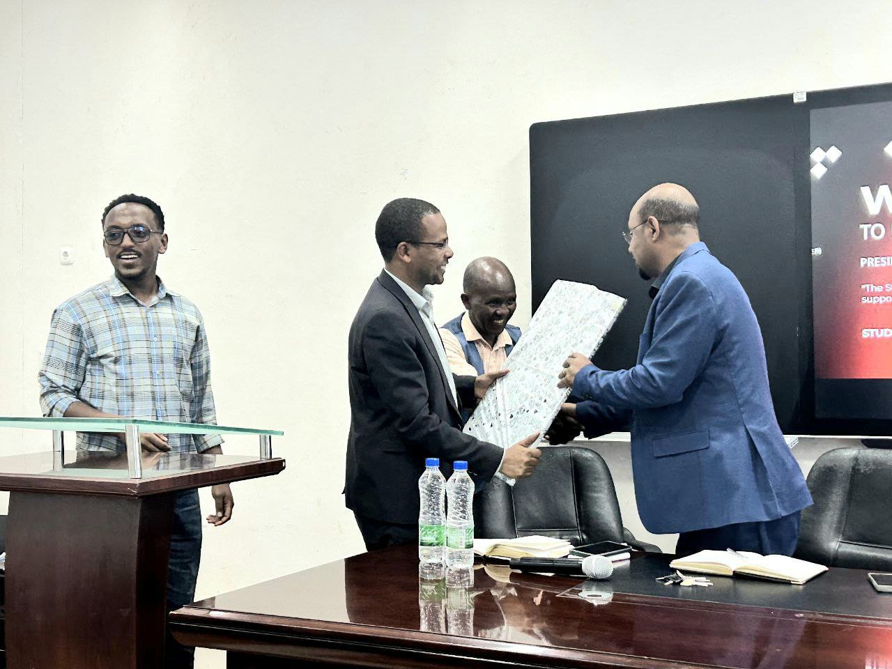 የተማሪዎች ካውንስል አባላትም ለአመራሮች በርካታ ጥያቄዎችን አንስተው የተወያዩ ሲሆን የተማሪዎችን አገልግሎት አሰጣጥ ለማስተካከል ላሳዩት ቁርጠኝነት ምስጋና ለመግለፅ እና እንኳን ደህና መጡ በማለት ለፕሬዝዳንት ዶ/ር ችሮታው አየለ ልዩ ስጦታ አበርክተውላቸዋል::